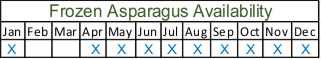 Los espárragos congelados conservan sus propiedades organolépticas (sabor, color, olor y textura) como en el producto fresco, sin dejar de conservan sus beneficios vitamínicos; pero su característica mas resaltante es que tiene mayor tiempo mayor tiempo de vida de anaquel frente al esparrago fresco. Asimismo, se puede distribuir en dos presentaciones de lanzas, cortadas y en puntas.
